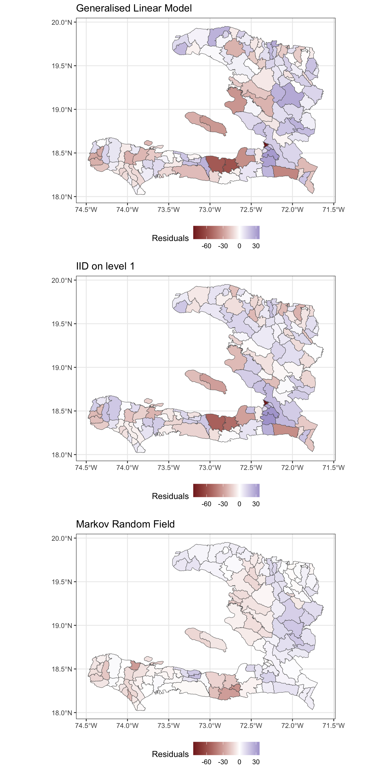 - Create a spatial visualisation for the residuals from each model
